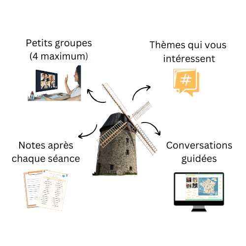 Le "moulin à paroles" est un cours de conversation en français en petit groupe. Il se déroule sur 1 trimestre (= 10 séances)